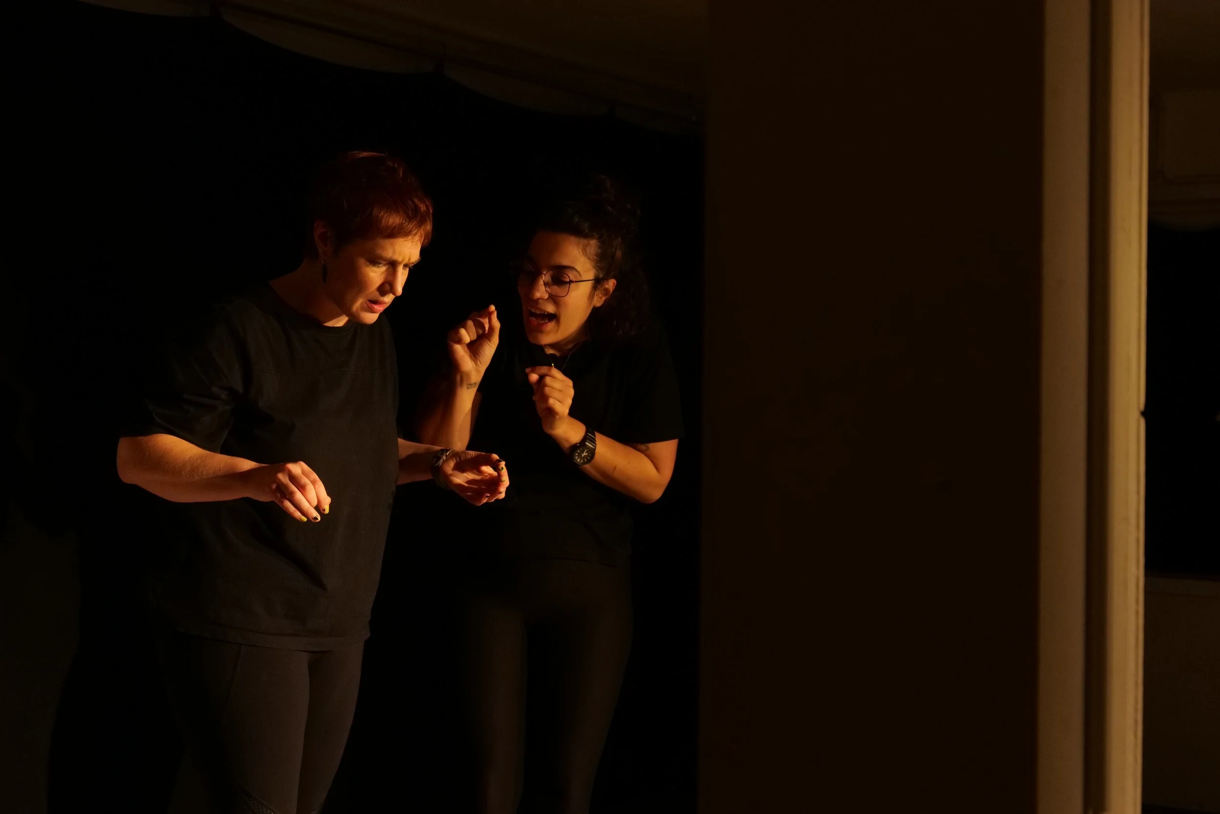After meeting at IMPRO Amsterdam, their connection through improv, art, and design grew, and they began collaborating through weekly Zoom sessions. Their exploration focuses on the ephemeral nature of improv performance and impact of documenting it on perception and memory, as well as how spaces hold layers of history and transformation - echoes of past sounds, stories, identities - and their influence on performance.